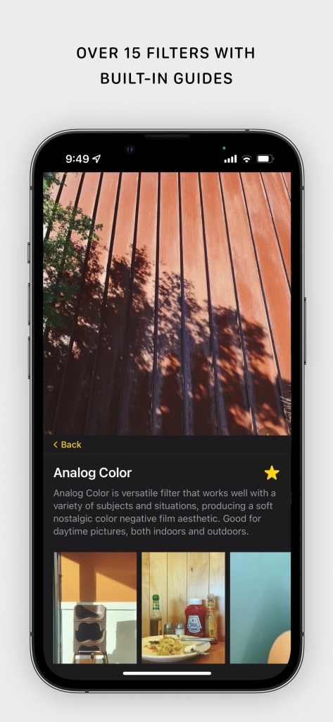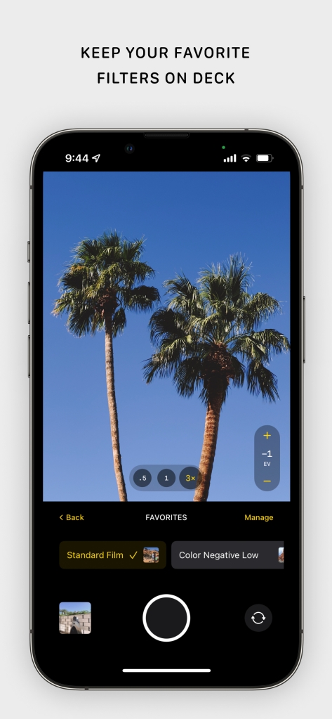 There are 20 filters in RitchieCam to choose from: 17 color and 3 B&W. Inspired by film, I crafted these filters to have an analog essence. None of them are intended to mimic any specific film exactly; instead, they’re made to produce analog-like memory color. These filters have a retro vibe, and you’re sure to find at least one that compliments your style. Three are available for free—Standard Film, Analog Color, and B&W Negative; unlock the other 17 by becoming a RitchieCam Patron today!